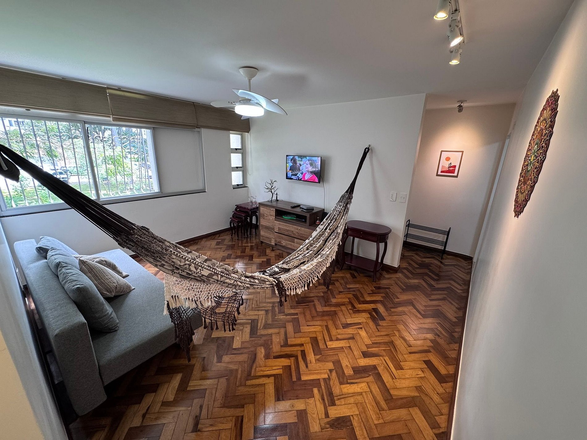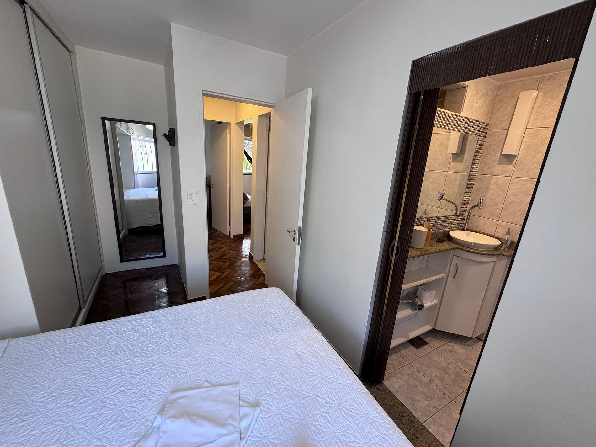 Acesso fácil e automatizado por fechadura eletronica, possui Wi-Fi, Lava roupas, tabua e ferro de passar, secador de cabelos, cafeteira italiana e suporte para café coado.