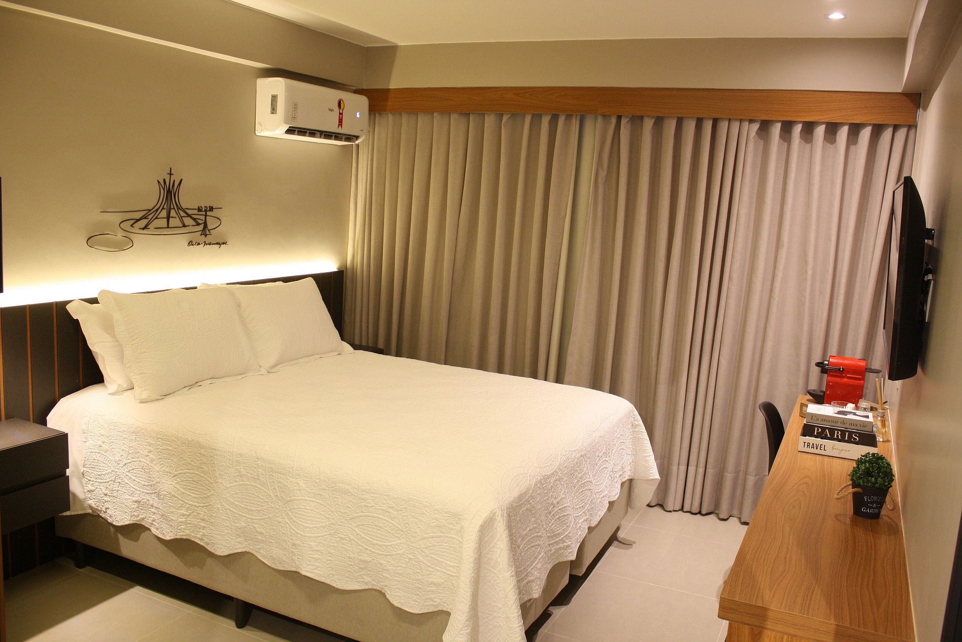 Flat de 23 metros quadrados localizado no coração de Brasília. Apartamento reformado com objetivo de fornecer muito conforto e segurança.
