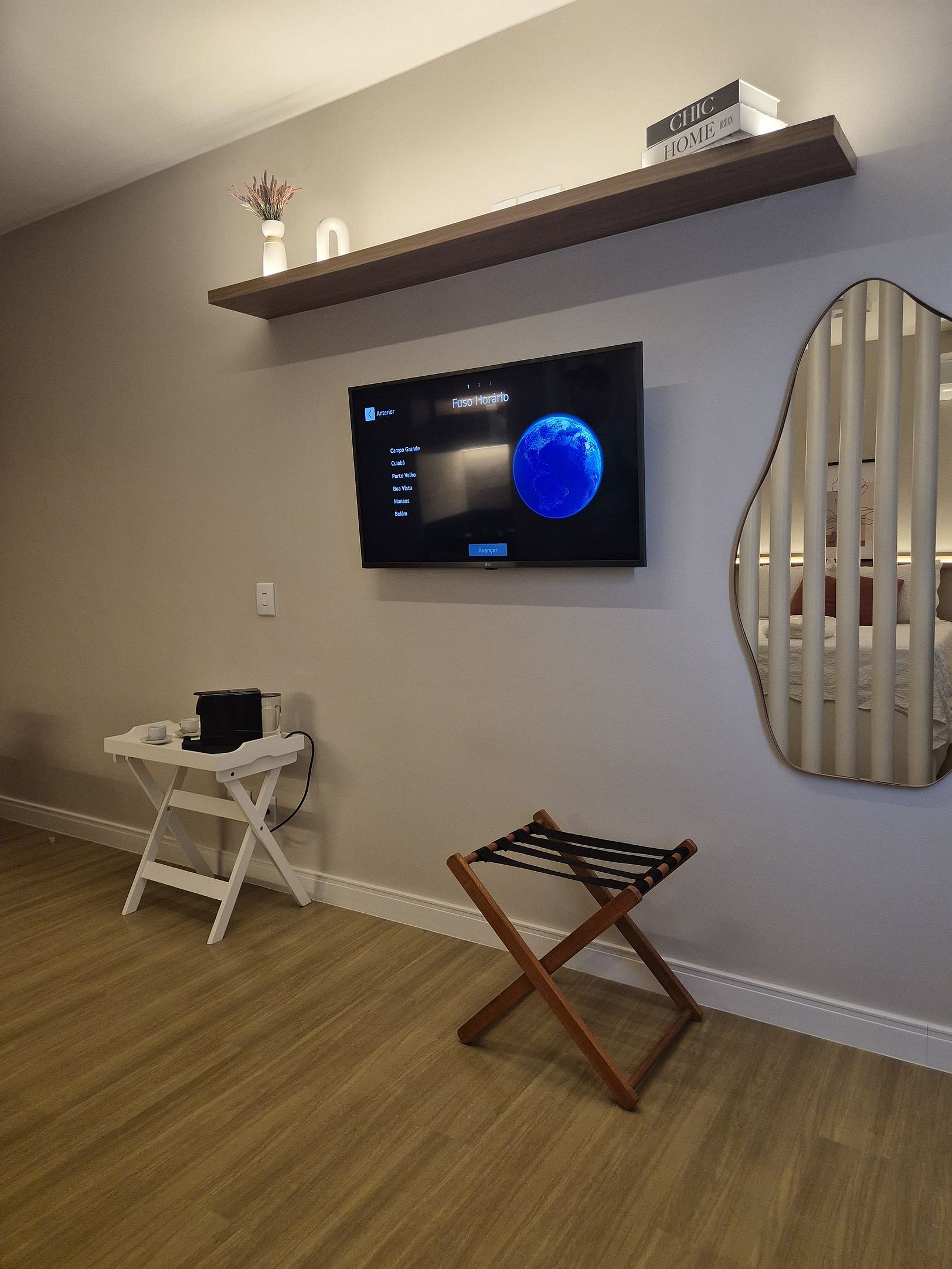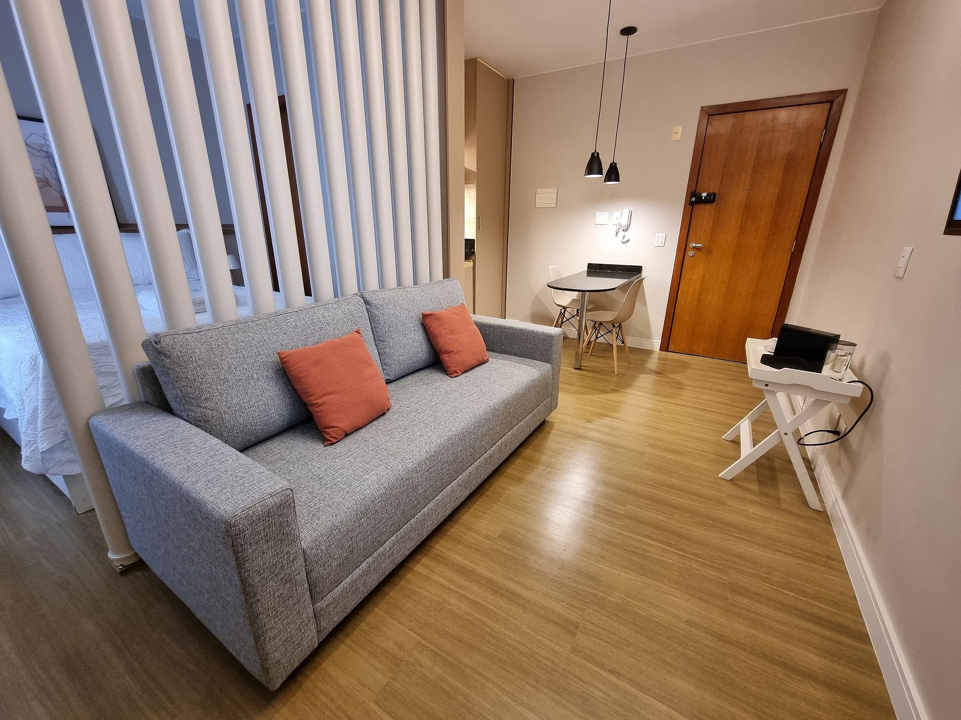 Estúdio novíssimo, mobiliado para atender nossos hóspedes com muito conforto e segurança. Localizado no Condomínio Garden Park, bloco A, bem próximo à portaria. Possui elevador, vaga de garagem coberta e loja de conveniência. A acomodação fornece Wi-Fi de alta velocidade, TV Smart, Ar condicionado, roupa de cama e banho, secador de cabelo, ferro de passar com tábua, maquina de café da marca Nespresso.